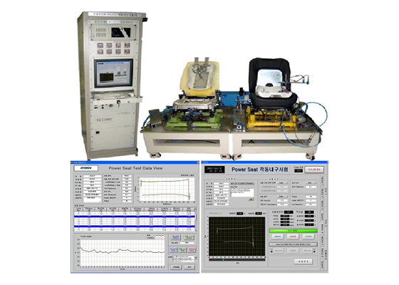 본 시험기는 승용차 시트에 사용되는 모터의 성능 및 내구성 시험기로서 각 모터별 내구성 시험과 작동 속도, 작동 내구성, 구동력 및 변위와 전류를 측정할 수 있으며 측정한 데이터의 저장 및 분석 평가하기 위한 최신형 장비입니다.